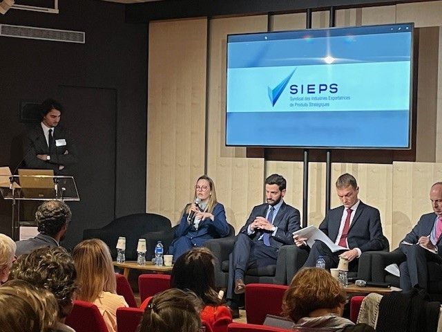 Emmanuel Lardeux, président du SIEPS et Mathieu Fossat, Chef du SBDU, ont tous deux rappelé les enjeux de souveraineté dans le contexte géopolitique tendu que nous traversons, la dimension stratégique du contrôle des exportations – qui représente 15,7 Mds d’€ en 2024, et l’importance d’une enceinte comme le SIEPS pour échanger, partager sur les sujets réglementaires hautement stratégiques pour nos entreprises.
